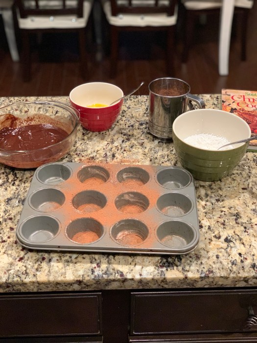 - Generously butter your muffin pan and dust with cocoa powder. This will ensure that your lava cakes can be easily pulled out of the pan.