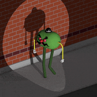 His fist balled up tight; his shirt is disheveled and wearing a crazy look in his eyes. Once he gets closer, he yells out:
