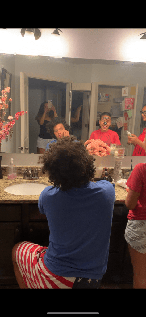 Last, we have my oldest getting oils to maintain her shine and hair growth.