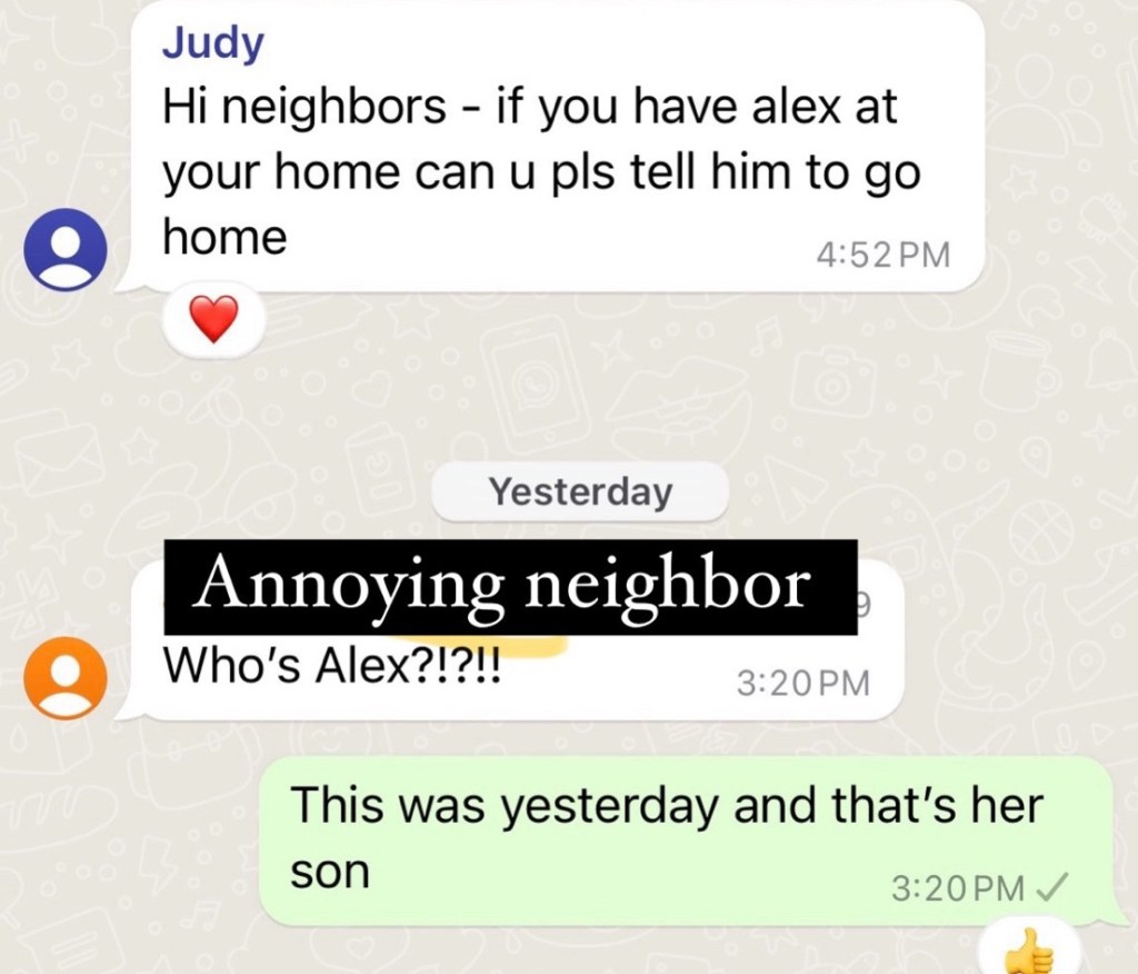 So when the fun was just about over, my neighbor wrote in our community chat, “Hey neighbors if you have Alex at your home can u please tell him to go home”.
