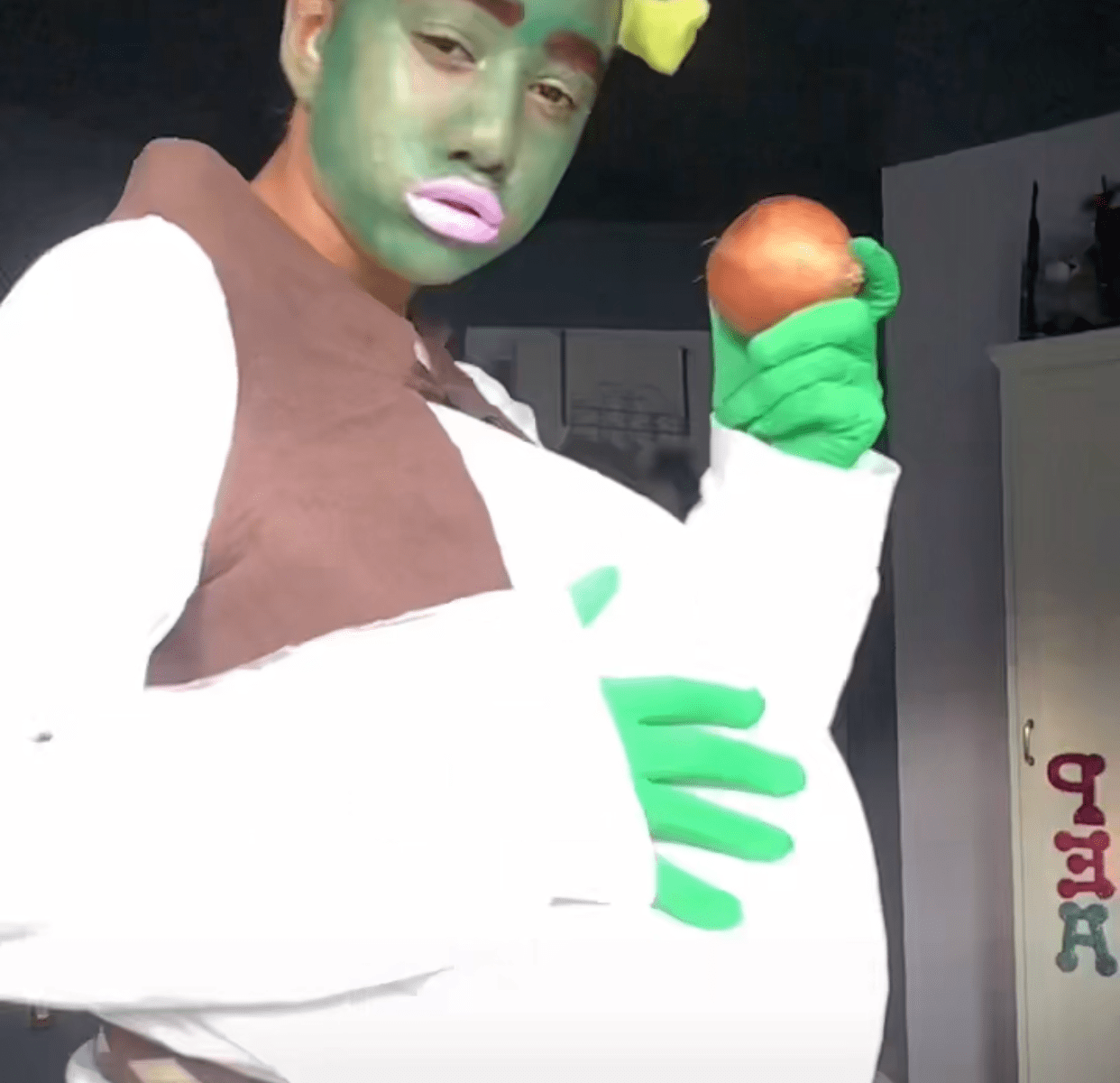 This year, my daughter was Shrek, but her costume that I ordered from Amazon didn’t arrive until three days after the big day. So I had to get creative and fix it up myself.