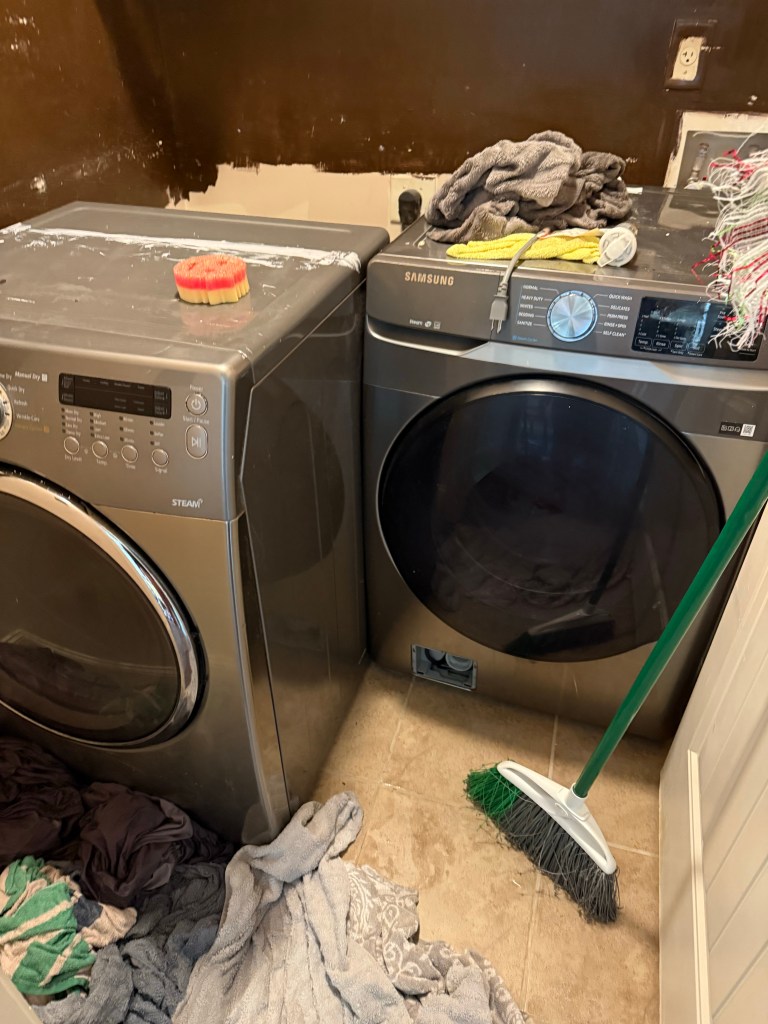 Washing machine water everywhere, so fix it, paint, and clean!